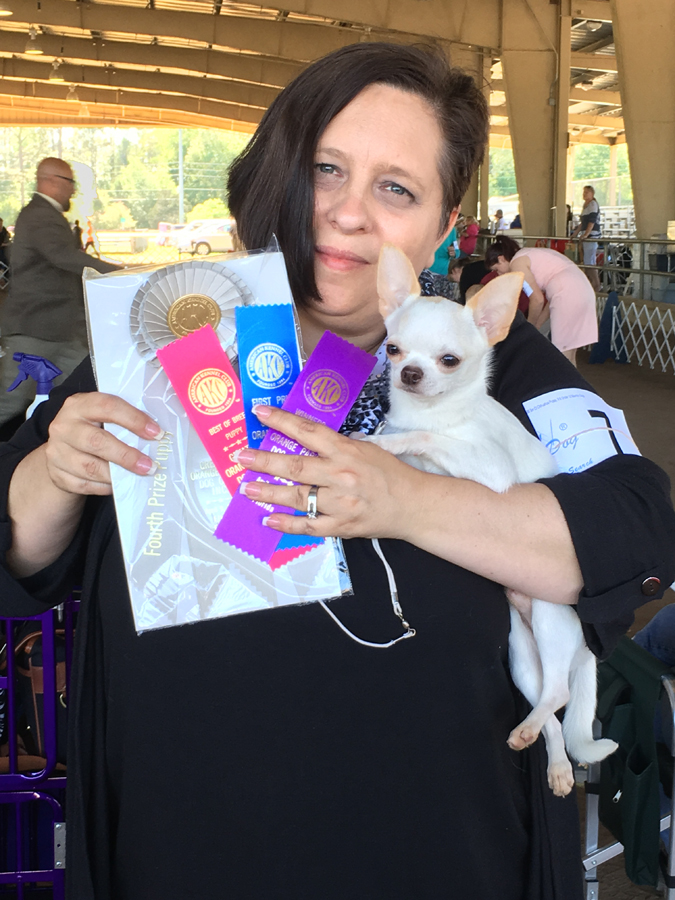 In addition to winning Winner’s Dog, Georgie also won Best Puppy. They were holding a Best Puppy competition today install of Owner-Handler. With my friends pushing me to give it a go, I decided to enter the ring with the restive the Toy Breed puppies. I tried this in West Palm Beach and didn’t feel that Georgie had a fighting chance. He still has a lot of maturing to do. Perhaps it was my thinking “there was NO way” that my body relaxed and my brain let go. When we got the point and nod, I think I stopped breathing for a second. We got s Group Four!!! WOWZERS! So totally awesome!